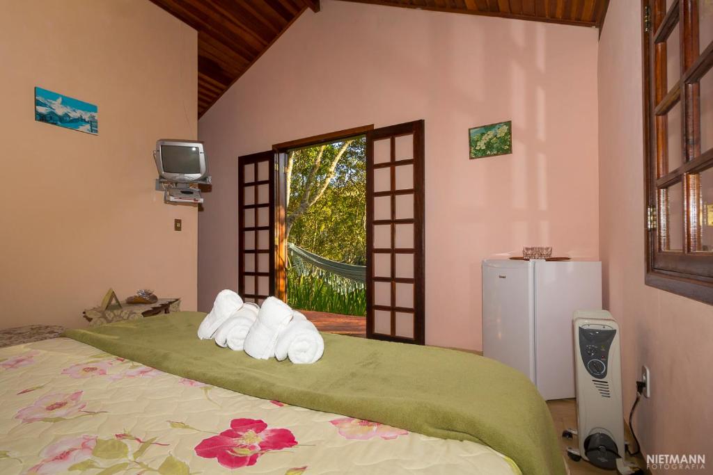 Este chalé dispõe de frigobar, TV de tela plana, aquecedor elétrico, produtos de banho gratuitos e varanda com rede.