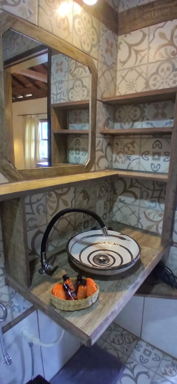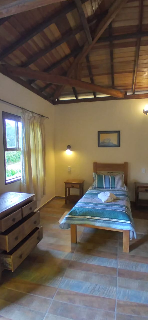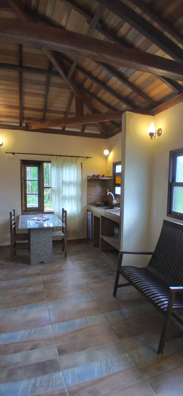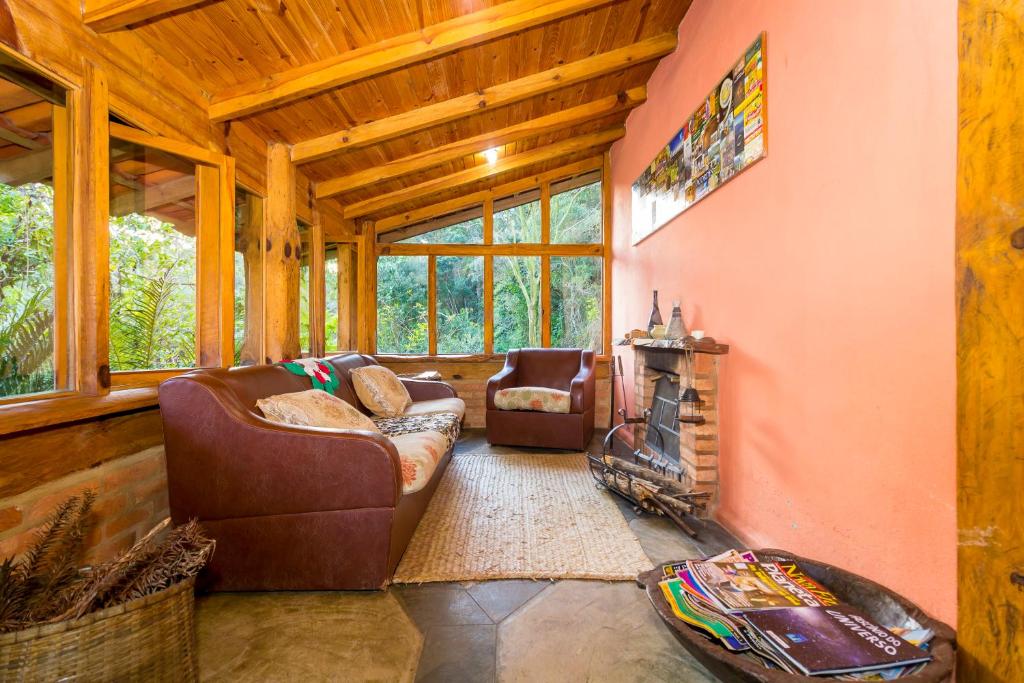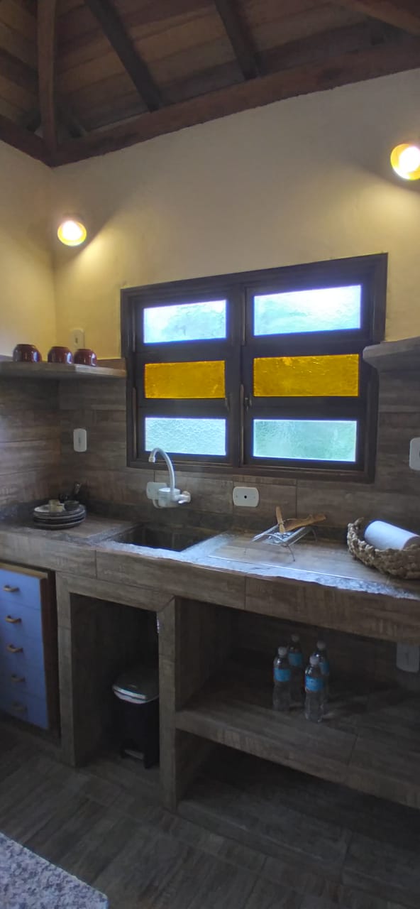 Este chalé dispõe de cozinha compacta, acessórios basicos, frigobar 120l, aquecedor elétrico, secador de cabelos, lareira à lenha e área externa para fogueira.