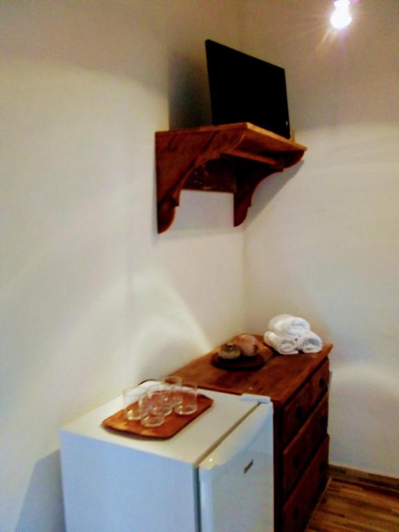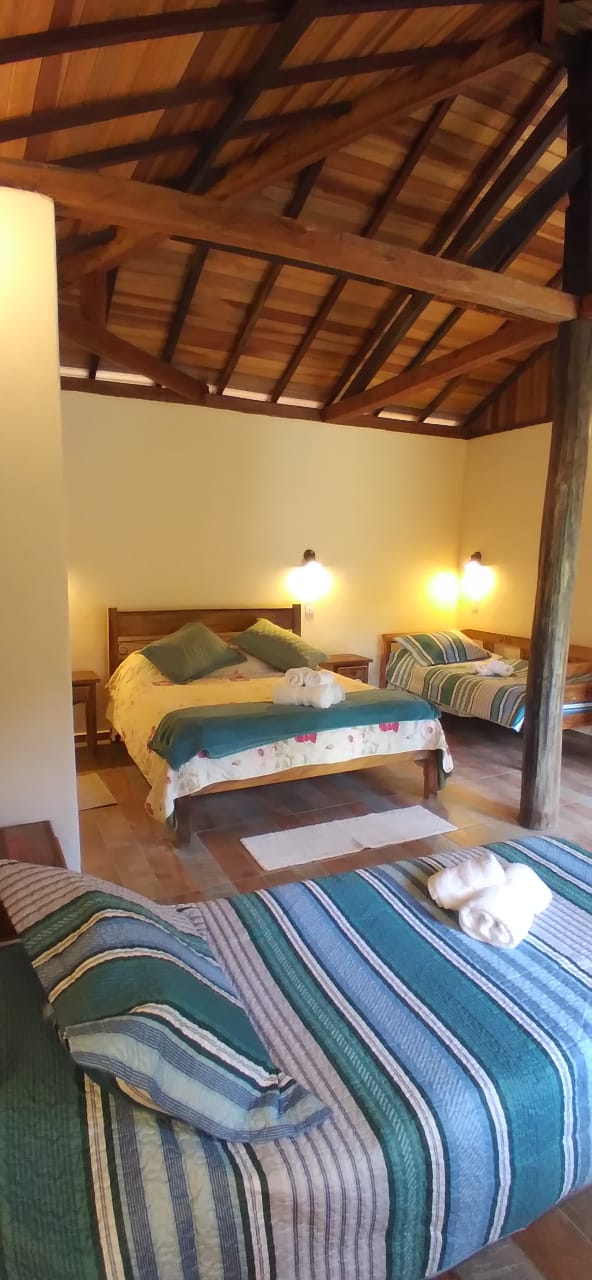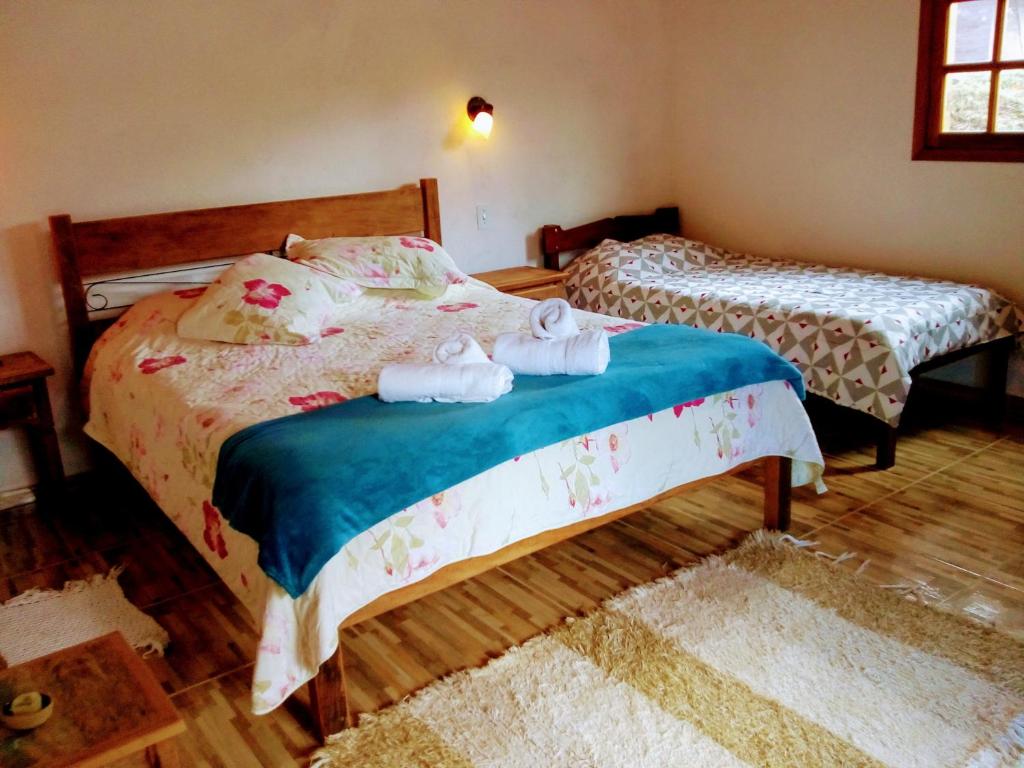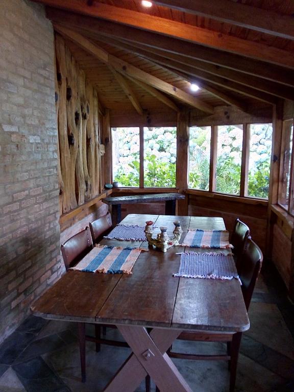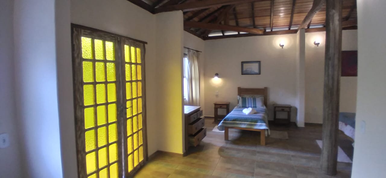 Este chalé dispõe de cozinha compacta, acessórios basicos, frigobar 120l, aquecedor elétrico, secador de cabelos, lareira à lenha e área externa para fogueira.